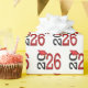 Red 2026 graduation cap with bold black text on a white background.