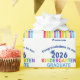 This cute 2026 kindergarten graduation wrapping paper features a cool grad cap above colorful writing and a row of crayons in rainbow. Fun kindergartner graduate gift wrap in fun colors for the last day of elementary school. Congratulations to our kinder grad!