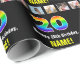 Ce design de papier d'emballage à thème d'anniversaire audacieux et amusant comprend un grand nombre de "20" ayant un motif dégradé dynamique inspiré du spectre arc-en-ciel, plus le message "Joyeux 20e anniversaire", et un nom de destinataire personnalisé. Il y a aussi des photos qui peuvent être personnalisées, peut-être avec des photos du destinataire, de la famille et des amis du destinataire et/ou de l’expéditeur du cadeau. Un papier d’emballage sur le thème de l’anniversaire, comme celui-ci, peut être utilisé pour offrir un cadeau ou un cadeau pour célébrer le vingtième anniversaire de quelqu’un. (Photographie © Storytree Studios, Stanford, CA.) [~Z0000670]