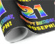 Ce papier d'emballage joyeux, amusant et coloré sur le thème de l'anniversaire comporte un grand nombre de "21" et le message "HAPPY BANTHDAY", tous deux ayant un dégradé arc-en-ciel de couleur motif inspiré, ainsi qu'un nom de destinataire personnalisé jaune gras. L'arrière - plan est noir de couleur. Un papier d'emballage amusant comme celui-ci peut être utilisé pour envelopper un cadeau d'anniversaire ou un cadeau donné à quelqu'un qui célèbre son vingt et unième anniversaire. [~Z0000475]