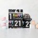 Rouleau de papier d'emballage aux couleurs vives avec un arrière - plan jaune d'une simple typographie "Joyeux Anniversaire" en utilisant des lettres bloc pour HAPPY et un script décontracté pour Anniversaire. Le numéro 21 est décoré de confettis colorés à points de polka. Un papier d'emballage que vous pouvez utiliser pour n'importe qui.