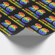Ce papier d'emballage coloré à thème d'anniversaire joyeux, amusant et coloré comporte un grand nombre de "26" et le message "HAPPY BANTHDAY", tous deux colorés avec un motif inspiré par un gradient de spectre arc-en-ciel, ainsi qu'un nom de destinataire personnalisable jaune gras. L'arrière - plan est noir de couleur. Un papier d'emballage thématique pour anniversaire amusant comme celui-ci pourrait être utilisé pour envelopper un cadeau ou un cadeau donné à quelqu'un qui célèbre son 26e anniversaire. [~Z0000475]