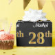 Ce design luxueux, élégant et élégant sur le thème de l'anniversaire comporte un grand numéro ordinal "28ème" ayant une apparence fausse/imitation or, en plus du message de bienvenue d'anniversaire "Joyeux 28ème anniversaire", et un nom de destinataire modifiable dans une police de style script. L'arrière - plan est noir de couleur. Un papier d'emballage luxueux comme celui-ci pourrait être utilisé pour envelopper des cadeaux donnés à quelqu'un pour célébrer leur vingt-huitième anniversaire. [~Z0000515]