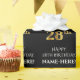 Ce papier d'emballage élégant et luxueux à thème d'anniversaire présente le message "Joyeux 28e ANNIVERSAIRE,", un nom personnalisé et le nombre d'anniversaire "28e" ayant un motif d'aspect or imitation/inspiré. Le fond est coloré en noir. Du papier d'emballage comme celui-ci pourrait être utilisé lors de l'emballage de cadeaux à offrir pour célébrer le 28e anniversaire de quelqu'un. [~Z0000454]