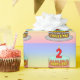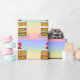 Ce papier d'emballage d'anniversaire amusant et joyeux présente une représentation de style dessin animé d'un gâteau d'anniversaire à trois niveaux avec une bougie en forme de numéro sur le dessus montrant l'âge "2", avec le message "HAPPY 2ND BIRTHDAY", et un nom de destinataire personnalisable. L'arrière - plan a un motif multicolore pastel en arc-en-ciel inspiré du spectre dégradé. Un papier d'emballage coloré à thème d'anniversaire comme celui-ci pourrait être une façon amusante d'envelopper un cadeau ou un cadeau donné à quelqu'un qui célèbre son deuxième anniversaire. [~Z0000622]