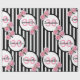 Papier Cadeau 30e anniversaire rose roses noir blanc rayures nom