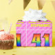 Ce papier d'emballage amusant et joyeux de 41e anniversaire de conception a un grand nombre de "41" avec un motif coloré inspiré par l'apparence d'un spectre arc-en-ciel. Il comporte également le message "Joyeux 41ème anniversaire", suivi d'un nom personnalisé. L'arrière - plan est doté d'un motif amusant de rayures rose foncé et rose clair, aux coeurs roses aimés. Un papier comme celui-ci peut être utilisé pour envelopper des cadeaux donnés à quelqu'un pour célébrer son 41e anniversaire. [~Z0000415]