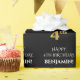 Ce luxueux et élégant design de papier d'emballage d'anniversaire comporte le message "HAPPY 4th BIRTHDAY", un nom modifiable, et le numéro d'anniversaire "4th" avec un faux/imitation motif d'apparence d'inspiration or. L'arrière - plan est noir de couleur. Un papier comme celui-ci peut être utilisé pour préparer des cadeaux ou des cadeaux pour célébrer le 4e anniversaire de quelqu’un. [~Z0000454]