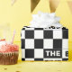 Faites ressortir votre cadeau lors d'une fête du 50e anniversaire ou d'une célébration du cinquantième anniversaire avec un papier d'emballage avec un motif en noir et blanc gras à damiers avec les mots "The Big Five Oh" répétant en alternant blanc sur noir et noir sur texte blanc. Copyright ©Claire E. Skinner. Tous droits réservés.