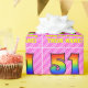 Ce joyeux et joyeux design de papier d'emballage sur le thème du 51e anniversaire comprend un grand nombre de "51" ayant un motif coloré inspiré par l'apparence d'un spectre arc-en-ciel. Il comporte également le message "Joyeux 51ème anniversaire", suivi d'un nom personnalisé. L'arrière - plan dispose d'un motif amusant de rayures rose pâle et rose foncé contenant des coeurs roses aimés. Un papier comme celui-ci peut être utilisé pour envelopper des cadeaux donnés à quelqu'un pour célébrer son 51e anniversaire. [~Z0000415]