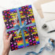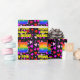 Cette conception de papier d'emballage joyeuse et amusante sur le thème d'anniversaire présente un grand chiffre « 55 » avec un motif inspiré d'un dégradé de spectre d'arc-en-ciel, ainsi que le message « Joyeux 55e Anniversaire », et un nom personnalisable. Le fond présente un motif de formes de cœur avec des couleurs comme le rose, le rouge et le violet. Un papier d'emballage comme celui-ci pourrait être utilisé pour emballer des cadeaux offerts à quelqu'un pour célébrer son cinquante-cinquième anniversaire.