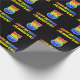 Ce papier d'emballage d'anniversaire joyeux, amusant et coloré présente un grand nombre de "5" et le message "HAPPY BANTHDAY", tous deux avec une couleur motif inspirée du gradient de spectre arc-en-ciel, ainsi qu'un nom de destinataire personnalisable jaune gras. L'arrière - plan est noir de couleur. Un papier d’emballage à thème d’anniversaire amusant comme celui-ci pourrait être utilisé pour envelopper un cadeau ou un cadeau donné pour célébrer le 5e anniversaire de quelqu’un. [~Z0000475]