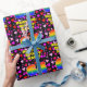 Ce modèle de papier d'emballage d'anniversaire joyeux et coloré comprend un grand nombre de "64" ayant un motif inspiré par un gradient de spectre arc-en-ciel. Il comporte également le message "Joyeux 64e anniversaire", et un nom personnalisable. L'arrière - plan présente un motif aux formes de coeur rouge, rose et violet. Un papier comme celui-ci peut être utilisé pour envelopper des cadeaux donnés à quelqu'un pour célébrer son 64e anniversaire. [~Z0000549]