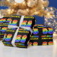 Ce papier d'emballage d'anniversaire amusant, gai et coloré comprend un grand nombre de "68" et le message "HAPPY BANTHDAY", tous deux avec une couleur motif inspirée par un gradient de spectre arc-en-ciel, ainsi qu'un nom de destinataire personnalisable jaune gras. L'arrière - plan est noir de couleur. Un papier d’emballage amusant comme celui-ci peut être utilisé pour donner un cadeau ou un cadeau en l’honneur du 68e anniversaire de quelqu’un. [~Z0000475]