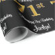 Ce luxueux, élégant et élégant design papier d'emballage d'anniversaire comporte un grand numéro ordinal "71st" ayant une imitation/fausse apparence d'inspiration or, en plus du message de voeux d'anniversaire "Happy 71st Birthday", et un nom de destinataire modifiable dans une police de style script. Il dispose également d'une arrière - plan de couleur noire. Un papier d'emballage à thème d'anniversaire comme celui-ci pourrait être une façon amusante d'envelopper un cadeau ou un cadeau donné à quelqu'un qui célèbre son 71e anniversaire. [~Z0000515]