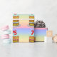 Ce papier d'emballage d'anniversaire amusant et joyeux présente une représentation de style dessin animé d'un gâteau d'anniversaire à trois niveaux avec des bougies en forme de chiffre sur le dessus montrant l'âge "75", avec le message "HAPPY 75TH BIRTHDAY", et un nom de destinataire personnalisé. L'arrière - plan dispose d'un motif multicolore pastel en arc-en-ciel inspiré du spectre dégradé. Un papier d'emballage à thème d'anniversaire comme celui-ci pourrait être une façon amusante d'envelopper un cadeau ou un cadeau donné à quelqu'un qui célèbre son 75e anniversaire. [~Z0000622]