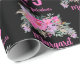 Papier d'enveloppement floral rose noir de 75e anniversaire. Personnalisez avec nom, âge et texte.
