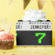 Cette conception de papier d'emballage d'anniversaire geek et amusant comprend un grand jeu vidéo vintage vert de style "7" sur un arrière - plan de couleur noire. Il comporte également le message de voeux d'anniversaire "Happy 7th Birthday", et un nom qui peut être personnalisé. Un papier d'emballage à thème d'anniversaire comme celui-ci peut être une façon amusante d'envelopper un cadeau ou un cadeau qui est donné à quelqu'un qui célèbre son 7e anniversaire. [~Z0000403]