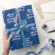 Papier Cadeau 80e anniversaire Nom de fête Bleu Motif moderne