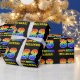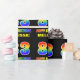 Ce papier d'emballage d'anniversaire amusant, coloré et joyeux comporte un grand nombre de "83" et le message "HAPPY BANTHDAY", tous deux avec une couleur motif inspirée par un gradient de spectre arc-en-ciel, ainsi qu'un nom de destinataire personnalisé jaune gras. L'arrière - plan est noir de couleur. Un papier d'emballage amusant comme celui-ci pourrait être utilisé pour envelopper des cadeaux donnés à quelqu'un pour célébrer leur quatre-vingt-troisième anniversaire. [~Z0000475]