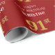 Papier Cadeau 91e anniversaire : Elégant, Rouge, Faux Gold Look