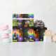 Ce papier d'emballage d'anniversaire joyeux et amusant comporte un grand nombre de "91" avec un dégradé coloré de spectre arc-en-ciel inspiré motif, avec le message "Happy 91st Birthday,", et un nom personnalisé. L'arrière - plan est décoré d'un motif vibrant et coloré, inspiré par les feux d'artifice des célébrations. Envelopper du papier comme celui-ci peut être une façon amusante d'envelopper un cadeau d'anniversaire ou un cadeau donné à quelqu'un qui célèbre son 91e anniversaire. [~Z0000587]