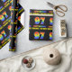 Ce papier d'emballage d'anniversaire amusant, coloré et joyeux comporte un grand nombre de "97" et le message "HAPPY BANTHDAY", tous deux colorés avec un motif inspiré par un gradient de spectre arc-en-ciel, ainsi qu'un nom de destinataire personnalisable jaune gras. L'arrière - plan est noir de couleur. Un papier d'emballage thématique pour anniversaire amusant comme celui-ci pourrait être utilisé pour envelopper un cadeau ou un cadeau donné à quelqu'un qui célèbre son 97e anniversaire. [~Z0000475]