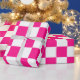 Papier Cadeau à damiers carré chaud rose blanc rétro géométrique