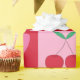 Papier Cadeau à damiers Cerises avec Motif de Coeurs Roses