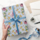 Papier Cadeau Abeille bleu pastel, peigne de miel et fleurs exot