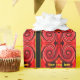 Abstrait rouge, noir et jaune tourbillons colorés papier d'emballage personnalisé. Conception par Susan.