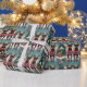 This festive design captures the joyful spirit of the holiday season, featuring an adorable dogs.Nestled in a winter wonderland, complete with a decorated Christmas tree, and beautifully wrapped presents. Snowflakes gently fall, adding a magical touch to the scene, while the vibrant colors of the holiday decorations create a warm and cheerful atmosphere.