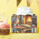 Papier Cadeau Afghan Hound Fireplace with Christmas Lights