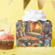 This festive Christmas illustration features a cheerful Airedale Terrace sitting beside a glowing fireplace, wrapped in colorful Christmas lights with stockings hanging overhead. The Airedale’s wiry coat and bright, intelligent expression bring added warmth and charm to this cozy holiday scene. Perfect for Airedale lovers, seasonal décor fans, and Zazzle shoppers looking for unique Christmas artwork celebrating their favorite terrier breed.