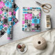 Ajoutez une touche personnelle à votre emballage cadeau. Utilisez "Personnalisez ce modèle" pour changer "Joyeux anniversaire Sarah! Best Sister Ever" texte à votre nom préféré et ami ou relation de famille. Une motif audacieuse et colorée avec des carreaux décoratifs de différentes tailles et des motifs variés. Des motifs noirs et blancs sur des arrière - plans magenta, bleu, noir et crème. Tous les motifs ont été dessinés et dessinés par moi et sont inspirés par le design celtique et islamique.