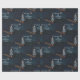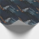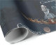 Alice du livre pour enfants Alice in Wonderland regarde le ciel bleu nuit sur un Père Noël vintage et sa traîneau remplie de jouets, ainsi que sa citation du livre "Curiouser et curieux, a pleuré Alice !" et une belle lune pour faire ce papier d'emballage cadeau de Noël magique et amusant.