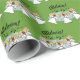 Un trio d'anges caricaturaux chantent "Alleluia !" sur ce papier d'emballage vert vif. Idéal pour les cadeaux de choeur cette saison. La couleur Arrière - plan peut être modifiée.