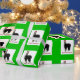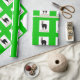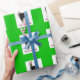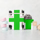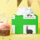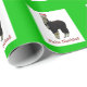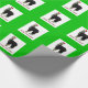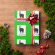 Un alpaga noir et blanc (tuxedo) dans un chapeau de Père Noël avec le texte "Feliz Navidad" dans un motif répétitif décore ce papier d'emballage de Noël