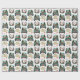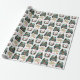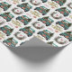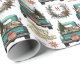 Un pick-up bleu turquoise transporte un arbre de Noël décoré et des paquets cadeaux sur ce joli papier d'emballage cadeau. Un beau chien américain Cocker Spaniel couleur bouffon surplombe la porte arrière. Un panneau en bois rustique sur le pare-chocs arrière dit "Cheer de Noël". Votre monogramme est entouré d'un joli cône de pin et d'une couronne de baies rouges, et le texte en or stylisé dit "Joyeux Noël". Vous pouvez également customiser "de la section (Nom).
