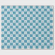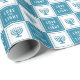 Enveloppez vos cadeaux Hanoukka dans le style avec ce beau papier d'emballage à damiers! Le design alterne des carrés turquoises foncés et blancs avec des illustrations de menorah turquoise et des lettres blanches modernes "Love and Light".