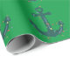 Papier Cadeau Ancres Bleues Avec Lumières De Noël Sur Vert