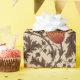 Papier d'emballage dans un motif floral vintage de damassé de William Morris des fleurs et du feuille d'anémone, numériquement augmenté et coloré - feuille brun chocolat profond, et fleurs aux nuances de la rouille oranges et or mol sur un arrière - plan beige moyen