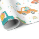 Papier Cadeau Animaux de la Jungle mignons en voitures avec arc-