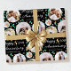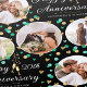 Faites de votre cadeau d'anniversaire un cadeau spécial grâce à ce papier d'emballage unique, prêt à vous personnaliser avec cinq de vos photos préférées, l'année anniversaire du mariage et les noms du couple. Ce design amusant et élégant présente des coeurs confettis et des lunettes de Champagne et est offert en vert émeraude et blanc, avec des éléments en faux or sur un arrière - plan noir. ♦ Pour remplacer le texte et les photos, cliquez sur "Personnaliser ce modèle". ♦ CONSEIL UTILE : le fait de recadrer vos photos sur une forme carré avant de les télécharger vous aidera à les positionner correctement.