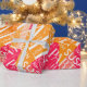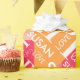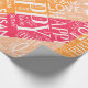 Ajoutez n'importe quel nom de longueur moyenne à cette conception amusante de nuage de mots pour créer un papier d'emballage d'anniversaire personnalisé adapté à tout âge. Ajustez la taille du texte pour l'adapter si nécessaire. Cet exemple montre un texte blanc sur une couleur bloquée arrière - plan dans des couleurs de fruits amusantes comme la framboise, l'orange et l'abricot. Recherchez ID274 pour voir d'autres conceptions de nuages de mots avec de l'espace pour des noms plus longs et aussi plus d'options de couleur pour cette conception.