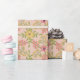 Joli papier d'emballage rose fleuri créé à l'aide de fleurs peintes à la main et de feuilles sur un joli arrière - plan rose. Art original de Leslie Larson.