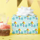 Regarde qui a un anniversaire ! Chouette bleue amusante avec ciel bleu et nuages moelleux. L'âge de l'enfant tenu par des ballons