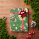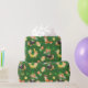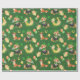Un design coloré de papier d'emballage vert avec des fers à cheval dorés, des pots d'or, des ballons et des chats