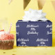 Papier Cadeau Anniversaire marine bleu blanc nom script minimali