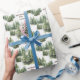 Papier d'enveloppement avec pinède, tout est placé sur l'arrière - plan blanc. Parfait pour l'anniversaire, tous les événements sur le thème de la nature et même Noël. Personnalisez facilement le texte. - Kate Eden Art.
